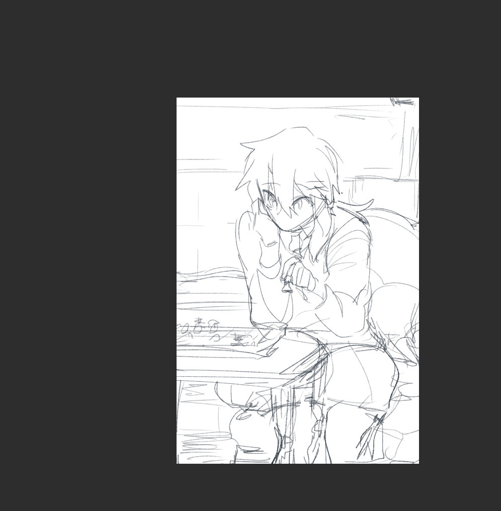 신경쓰려고 했던 것: 나무 질감, 벽과 소파 질감은 실패ㅋㅋ, 오브젝트 선들과 분리하여 인물에 강세 주기, 옷 재질에 따라 선 다르게 써보기(와이셔츠는 자잘한 주름 치마는 빳빳한 느낌상 주름 없음)